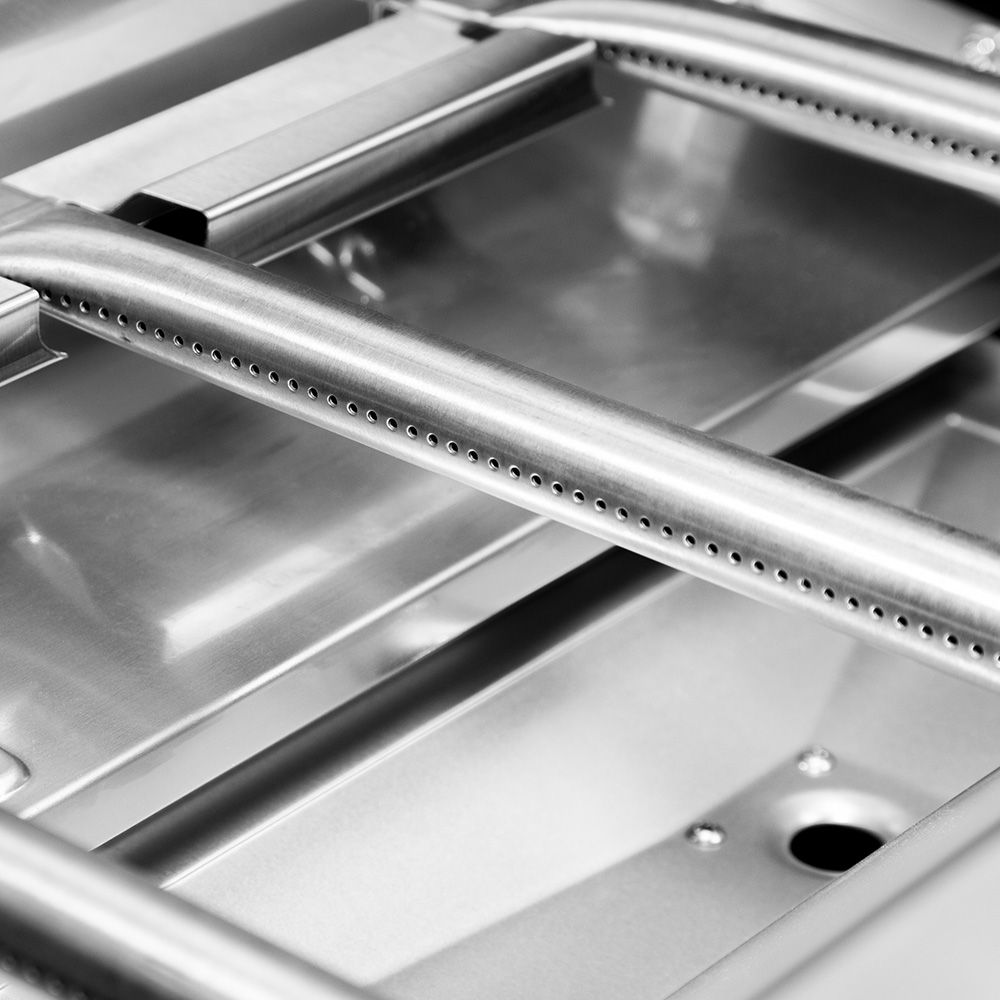 · Каждую горелку защищают рассекатели пламени. Они препятствуют возникновению вспышек пламени, обеспечивают равномерное нагревание и придают блюдам неповторимый аромат барбекю.