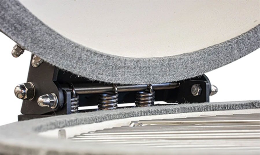 Новая, усиленная конструкция шарнира и замок на передней части гриля для комфортной работы с крышкой,